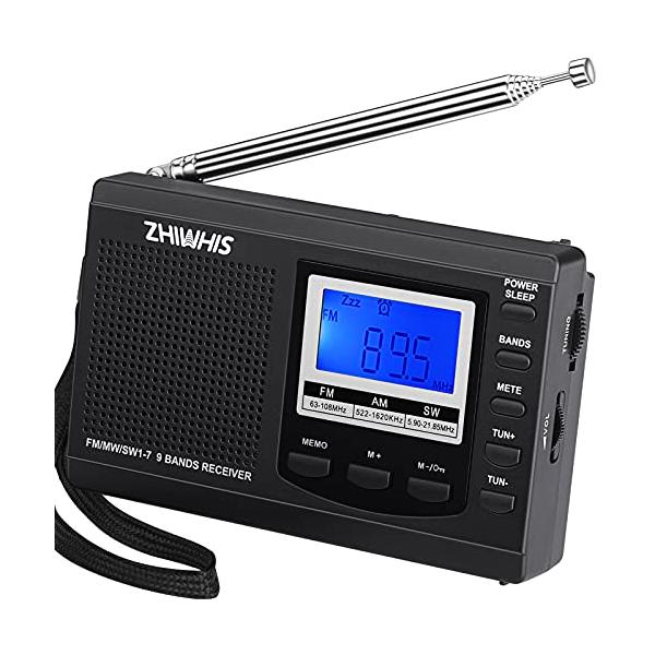 ZHIWHIS ラジオ 小型ポータブル FM/AM/SW ワイドfm対応 クロック防災ラジオ 電池式 タイマー/目覚まし時計/デジタル時計/キー