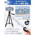 スマホ 三脚 iphone用 三脚 Bluetoothリモコン付き三脚 3WAY雲台 4段階伸縮 最大長さ130cm 360°回転可能 スマート