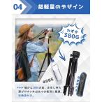 ・【超軽量&4段階伸縮、収納40cm】バージョンアップ三脚、軽量アルミ合金採用、高強度でただ380g、収納後のサイズは40cm、で高さは40cmから130cmまで4段階伸縮で多場景に適用。屋外撮影愛好者にとって、ただミネラルウォーター一本の重量で、そして肩紐がついた収納袋ついてるから、手軽に持ち運び、旅行、登山、歩行、イベントなどにも大活躍!!!