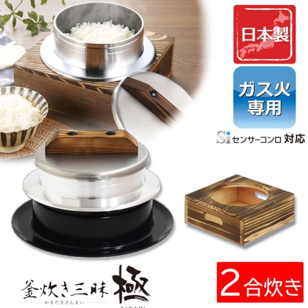 【在庫処分特価】 専用釜置台セット 釜めし ごはん釜 「釜炊き三昧 極」 2合炊き ガス火専用 シルバー 日本製 炊飯器 お米