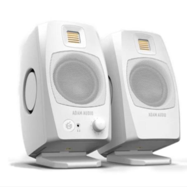 - ADAM AUDIO D3V White モニタースピーカー ADAM Audioのサウンドを最小サイズで実現するモニタースピーカー「D3V」誕生 D3Vは、「正確な音、原音に忠実、高解像度」を掲げるADAM Audioのサウンドを、最小サイズで実現するアンプ内蔵のモニタースピーカーです。AMT技術を採用した独自開発の1.5インチD-ARTツイーターと、フェライトマグネットシステムを搭載した3.5インチアルミ製ウーファーを備え、ペア合計で240Wの強力なアンプが各自ドライバーを駆動します。さらに、両面に配置された3.5インチパッシブラジエーターが低音域を強化し、そのコンパクトな見た目からは想像できない45Hzまでの驚異的な低音を再現可能です。 USB-C入力と2つのバランス型TRSフォン入力を備え、D3Vはデジタルおよびアナログの両方で高品質な接続を提供します。操作はシンプルで、マルチファンクションボリュームノブ、直感的な音響補正スイッチ、そしてマルチカラーのステータスインジケーターが搭載されています。
