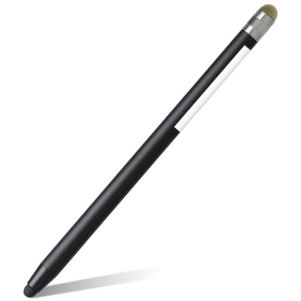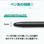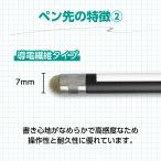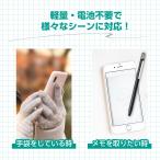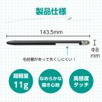 シリコン&導電繊維の2種類のペン先のタッチペンです。ペン先サイズ:シリコンゴムタイプ…5mm、導電繊維タイプ…7mm 。油性ペンで名前が書けるお名前スペース付です。