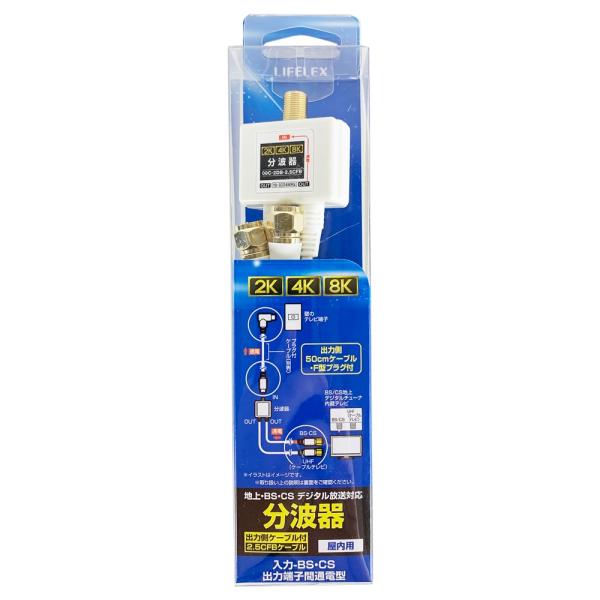 コーナンオリジナル PortTech 分波器出力ケーブル付 08C-2DB-2.5CFB/サイズ:W50XD35XH220mm 対応周波域:3224MH2まで 4K8K対応 ポートテック