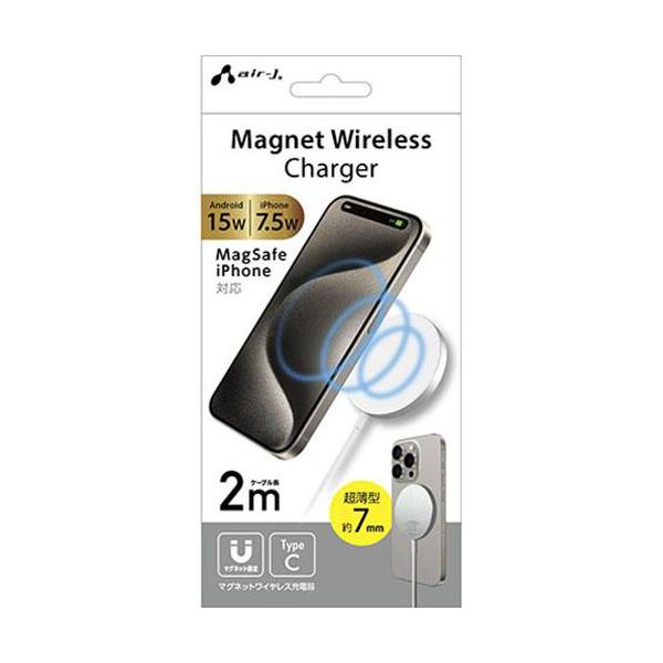 エアージェイ(air-j) AWJ-MS3W- 2M マグネットワイヤレス充電器 MagSafe対応 iPhone 2m