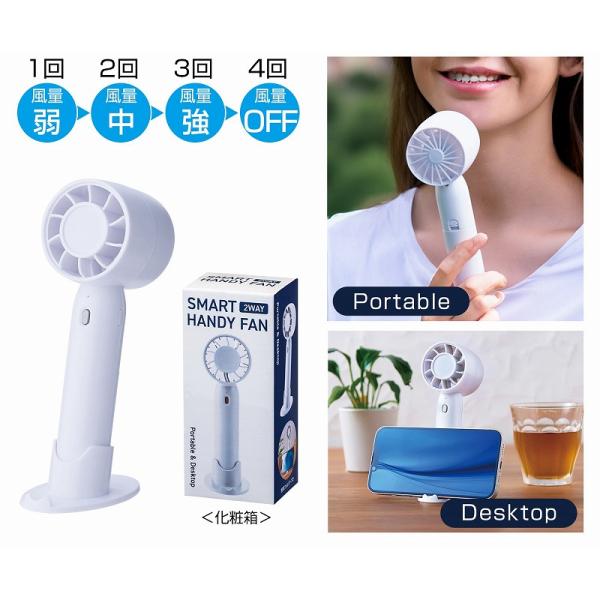 冷却グッズ 2WAYスマートハンディーファン ホワイト ★72個以上で送料無料(北海道・沖縄・離島は別途) /携帯扇風機/ポータブルファン/夏用