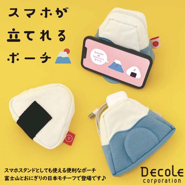 DECOLE デコレ スマホが立てれるポーチ 全2種 スマホスタンド ポーチ 和雑貨 富士山 おにぎり 日本モチーフ 小物入れ