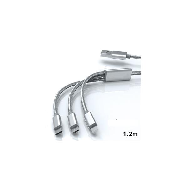 iPhone USB3.1Type-C microUSB 3種につながる マルチUSB充電ケーブル シルバー
