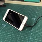 iPhone本体に接続する部分にL字型の樹脂を採用。そのためこのケーブルだけでiPhoneスタンドになり、充電・通信もできるというすぐれものです。