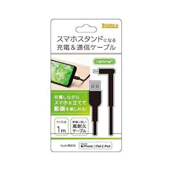 スタンド機能付 ライトニングケーブル iPhone用 ブラック 1m MFi認証 Lightning ケーブル
