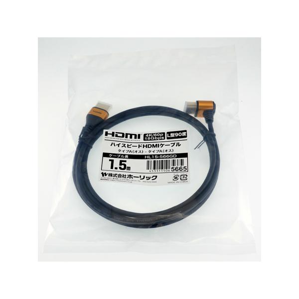 HDMIケーブル L型90度 1.5m ゴールド ホーリック HL15-566GD (65-1793-63)
