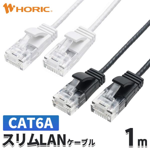 スリム LANケーブル 1m CAT6A 10Gbps対応 ブラック/ホワイト ツメ折れ防止 カテゴリ6A UTPケーブル 極細 細い 100cm LC10-107SB LC10-119SW