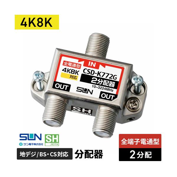 サン電子 4K8K対応2分配器 全端子電流通過型 CSD-K772G-NP