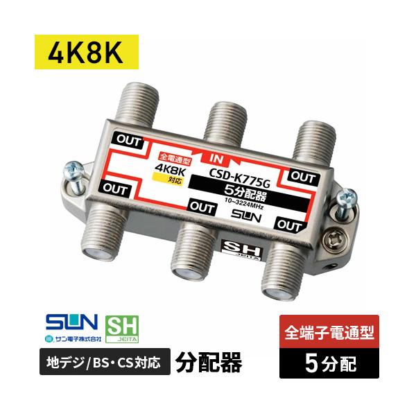 サン電子 4K8K対応5分配器 全端子電流通過型 CSD-K775G-NP