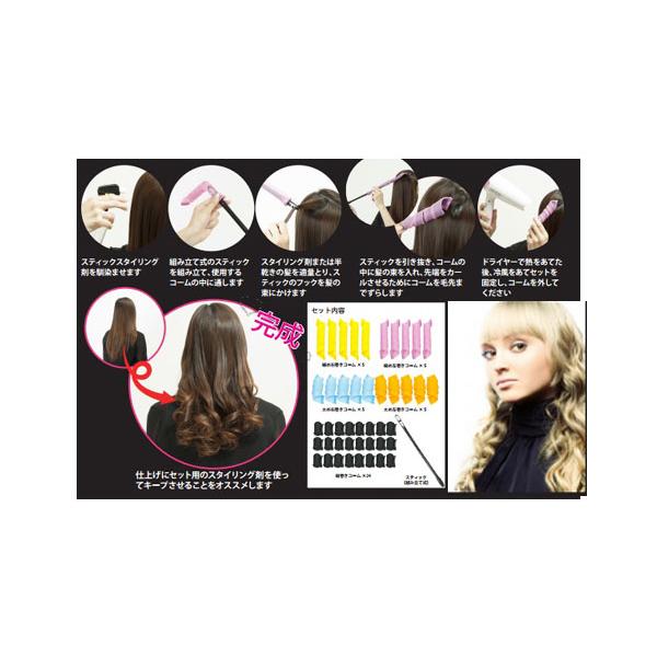 - <材質> PET、PP <セット内容> 細め巻き:右巻き×5本、左巻き×5本 太め巻き:右巻き×5本、左巻き×5本 立て巻き:24個 スティック×1本 <詳細サイズ> 細巻きコーム1点:長さ16×幅2.5cm(ロールを伸ばした時の長さ35cm) 太巻きコーム1点:長さ10×幅3.5cm(ロールを伸ばした時の長さ33cm) 縦巻きコーム1点:高さ3×幅2.5cm(ロールを伸ばした時の長さ175cm) スティック(組み立て式):長さ38×幅1.7×厚さ0.7cm□現品サイズ:別途記載□個装サイズ:約 20 × 20 × 12 cm□現品重量:約 498 g□個装重量:約 592 g□個装状態: 化粧箱□生産国:中国★ふわふわの巻き髪がかんたんにできちゃう!! *ストレートヘアから、巻き巻き大変身! *巻き髪やパーマヘアを自分で作るのは大変! でも美容院でセットしてもらうのはお金もかかるし時間もかかる・・・ 年を重ねていくと髪の毛のボリュームが少なくなる・・・ でもウイッグを着けるのはちょっと・・・ そんな方にオススメ!! 簡単に巻き髪やパーマヘアができちゃうスグレモノ!! *夜寝る前につけるだけで、 朝のセットが簡単にできちゃう。 *コームは右まき用左巻き用で色が分かれているので使いやすさもUP 髪のアレンジもUP *ショートの方でも毛先がクルクル 動きが出てオススメ。 *内カールにすればふんわりショートの出来上がり!