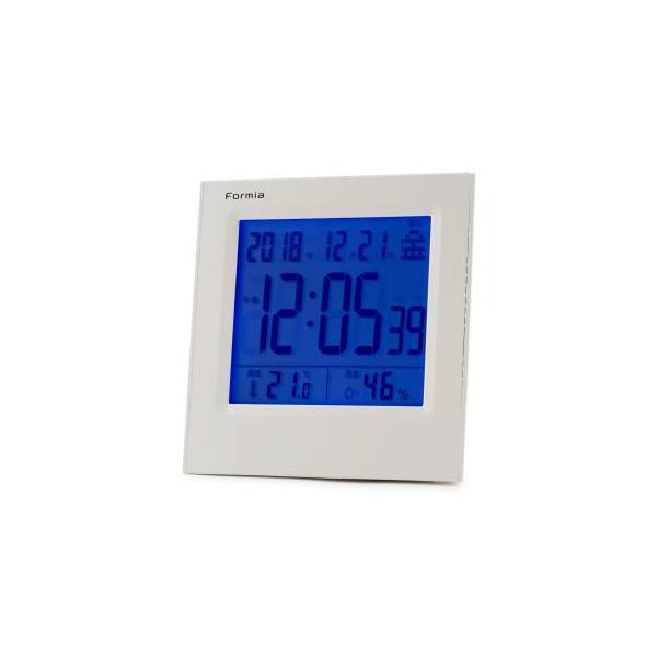 - 時刻修正不要の、電波受信機能付きのデジタルクロックです。 温・湿度計付きなので、お部屋の環境管理にもお使いいただけます。 ■素材 プラスチック ガラス ■商品サイズ(高さ×幅×奥行き) 約H117×W118×D58 mm ■商品重量 約175g ■カラー ホワイト ■機能 ・電波時計 ・電子音アラーム ・スヌーズ ・温湿度計 ・ライト ・モニター電池付 ■電源 単4乾電池×3本電波デジタル目覚まし時計 カレンダー 温度計 湿度計付き デジタルクロック Formia フォルミア 置き時計 HT-009RC