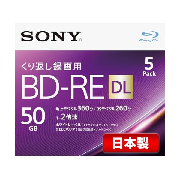 ソニー 日本製 ブルーレイディスク BD-RE DL 50GB 1枚あたり地デジ約6時間 繰り返し録画用 5枚入り 2倍速ダビング対応 ケース付属 5BNE2VJPS2
