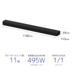- スペック情報 タイプサウンドバーサラウンド最大出力315 Wウーハー最大出力180 W4K伝送 60p対応リモコン ○DolbyDigital○Dolby Atmos○DTS○DTS:X○HDCP2.2○HDCP2.3○自動音場補正○ハイレゾ ○HDR対応○電源連動○Bluetooth○Bluetoothコーデック SBC AAC LDACWi-Fi○AirPlay対応○Spotify対応○HDMI端子入力端子:1系統 出力端子:1系統 (ARC対応) (eARC対応)幅x高さx奥行1100x64x113 mm重量4.7 kg※上記スペック情報は正確であることをお約束するものではございません。正確な商品情報につきましては、メーカーの公式サイトをご参照いただくか、直接メーカーへお問い合わせください。※空白部分は未調査の項目です。※掲載情報に誤りを発見した場合は、当ショップまでご連絡ください。ご配送のスケジュールこちらの商品は、 最短出荷商品 です 延長保証のご案内 5年延長保証(自然故障) 5,928円 5年延長保証(自然故障+物損) 8,938円 延長保証は有償のオプションサービスです。 ご加入をご検討のお客様は必ずこちらのページをご確認ください。 ※商品価格が変動して延長保証料が変わる可能性がございますのでご注意ください。