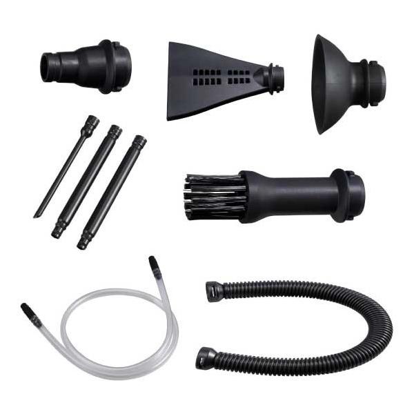 - 用途が広がる7種のノズルセット 0038-1528 ※本体は別売です。 コードレスエアダスタ用 (RA18DA RA12DA 共通) セット内容 ・ロングノズル 0038-0899 ・フレキシブルノズル 0038-0900 ・フラットノズル 0038-0901 ・ブラシノズル 0038-0902 ・ラバーアタッチメント 003-0903 ・フレキシブルホース 0038-0904 ・ノズルC 380905
