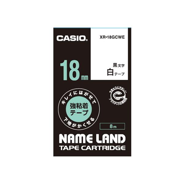 カシオ キレイにはがせて下地がかくせる強粘着18mm白 黒文字 強粘着 ネームランドテープ カシオ ネームランド 事務機器