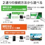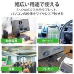 - 本製品をテレビに接続することで、スマホやパソコンの映像をワイヤレスでテレビの大画面に映せます。 2パターン選べる接続方法。Wi-Fiダイレクト(Miracast)接続とアクセスポイント接続を選択できるので、用途に合わせた使い分けが出来ます。 Wi-Fiダイレクト(Miracast)接続を使えば外部ネットワークに頼らず会社や取引先でのプレゼン、学校や塾での授業に使えます。 アクセスポイント接続を使えばスマホのデータ通信量を抑えながら大画面でストリーミング再生を楽しめます。 動画や写真、ウェブブラウザ、アプリなど、多彩なコンテンツを表示可能です。YouTubeなどの動画も大画面で楽しむことができます。 Full HD(解像度:1920×1080、フレームレート:60fps)に対応。高画質・高音質のスマホコンテンツも大画面で楽しむことができます。 テレビとケーブル2本(HDMIケーブル・USB給電ケーブル)をつなぐだけのカンタン接続。 HDMIケーブル・USB給電ケーブルが付属しているのですぐに使えます。 テレビのUSB-Aポートからの電源供給で動作可能。USB-Aポートが無い場合は別途USB AC充電器をご用意ください。 ※iOS、iPadOS、macOSではご利用いただけません。