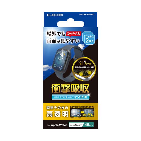エレコム AW-23AFLAFPARRG Apple Watch Series 2023 45mm 衝撃吸収フィルム AR 高透明 指紋防止