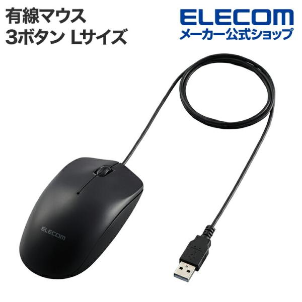 エレコム 有線 3ボタン 光学式 マウス Lサイズ ワイヤレス 左右対称 ブラック M-LE10URXBK