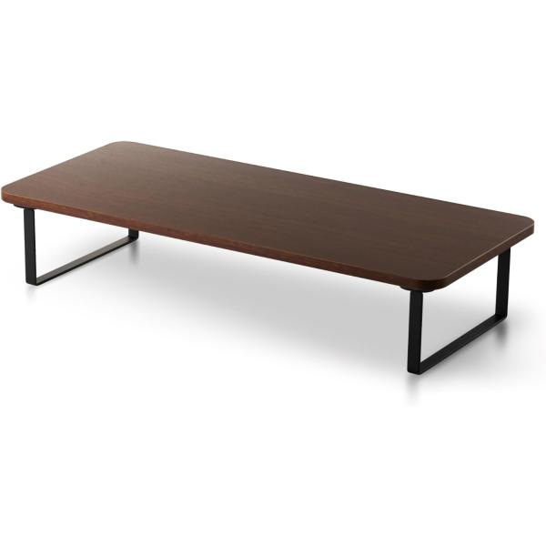 - エレコム PCA-DPSW5912WN モニター台 卓上 木目調 幅59cm 高さ12cm キーボード収納 耐荷重10kg ウォールナット 発売日:2025年8月9日●モニターの高さを上げ、目線を上げることでパソコン作業時の姿勢を改善するモニタースタンドです。スタンドの下にキーボードを置くなどスペースを有効活用できるので、デスクを広く使えます。●27インチまでのディスプレイ(パソコンモニター)に対応したディスプレイスタンドです。●約12cmの台でディスプレイ使用時の目線を上げられるため、パソコン作業の際の姿勢を改善します。●ディスプレイスタンドの下のスペースを有効活用してデスクの上を広く使うことができます。●パソコン不使用時にはディスプレイスタンドの下のスペースに横幅約50cmまでのフルキーボードを収納可能です。●工具不要の簡単組み立て仕様です。●脚部にはゴム脚がついているので、机上に設置しても滑りにくく安定してご使用いただけます。●自社環境認定基準を1つ以上満たし、『THINK ECOLOGY』マークを表示した製品です。●環境保全に取り組み、製品の包装容器が紙・ダンボール・ポリ袋のみで構成されている製品です。 【仕様】対応サイズ:〜27インチディスプレイ耐荷重:10kgサイズ:幅約590mm×奥行約260mm×高さ約122mm質量:約1.68kgカラー:ウォールナット材質:パーチクルボード、スチールその他:ディスプレイスタンド下部内寸:幅約505mm×奥行約260mm×高さ約110mm