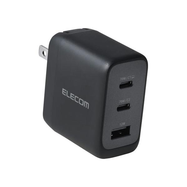 【お取り寄せ】エレコム USB充電器 C×2+A×1 70W ブラック ACDC-PD12770BK AC式充電器 バッテリー 充電器 スマホ タブレット関連品