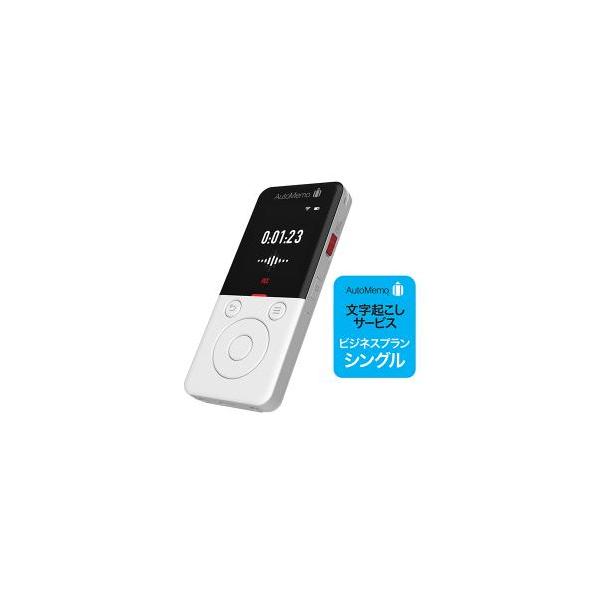 - 【スタッフのコメント】 AutoMemo Rとビジネスプランシングルがセットになった製品です。製品概 ●音声を自動で文字起こしするAIボイスレコーダーです。 ●ビジネスプランはシリアルご登録後オートメモの文字起こしを1年間使えるプランです。 特長 ●直感的な操作性 ・側面のスイッチをスライドするだけ出即録音。 ・物理ボタンを使ったわかりやすい方法で、はじめてでも迷わずに使えます。 ●1ヶ月以上バッテリーが持続 ・バッテリーは待機モードで1ヶ月以上持ちます。肝心なときに電池切れにならずに済みます。 ●シンプルなデザイン ・白を貴重とした、シンプルで洗練されたデザイン。 ・画面の表示は相手に取られていることを意識させにくいように配慮されています。 ●置いて使うのに最適な角度 ・背面に傾斜をつけることで、机に置いた時にマイクが持ち上がり、相手の方に向くように設計。 仕様 ●オートメモ R ●画面:2インチ ●解像度:240×320px ●メモリ(ROM):4GB ●電池 ・種類:リチウムイオン電池 ・容量:1400mAh ・定格電圧:3.85V ●電池持続時間 ・録音時:約12時間 ・待機時:1か月以上 ・定格電圧:3.85V ●録音ファイルフォーマット:OPUS (webアプリ経由でmp3 として取り出し可能) ●サンプリング周波数:16000Hz ●量子化ビット数:16bit ●外部接続 ・ Wi-Fi:IEEE802.11b/g/n ・2.4GHz:1〜14ch ●動作保証温度:0℃~40℃(結露しないこと) ●保存温度:-20℃~60℃(結露しないこと) 本体サイズ:幅:46mm 厚さ:15mm 高さ:104mm 本体重量:約68g ※商品に関する詳細仕様及び最新の正確な情報は、メーカーWebサイト、最新カタログなどをご確認ください。