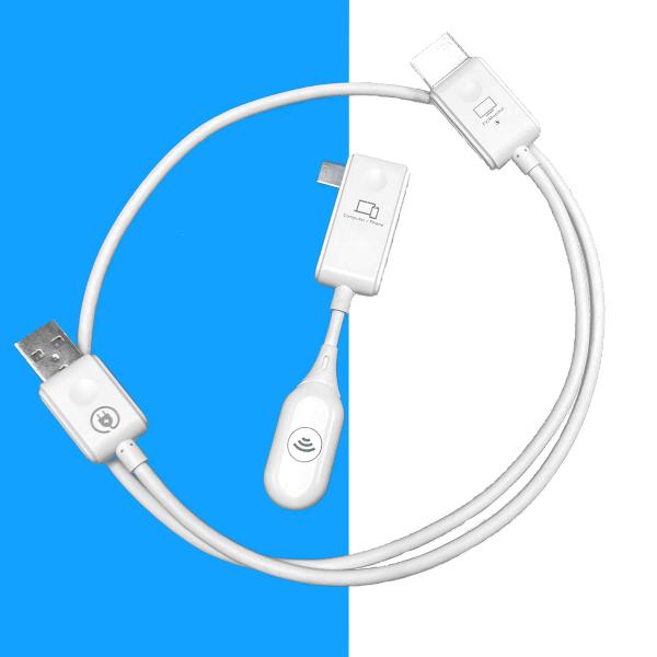 「Compact Mate2 USB-C」は映像出力可能なUSB Type-CポートがあるタブレットやPCなどの映像をワイヤレスでテレビやプロジェクターにミラーリングすることができる、小型のワイヤレス映像転送機です。送信機と受信機がセットになっており、送信機は手のひらに収まるサイズ、受信機はケーブル形状になっており、充電用ケーブルと同じ感覚で持ち歩くことができます。技適取得済み・日本語のスタートガイドも付属。
