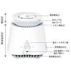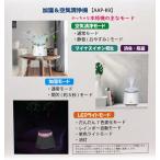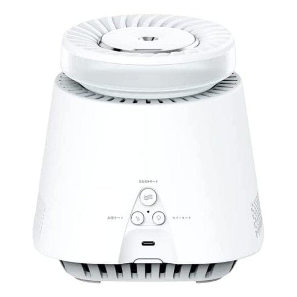 - 【製品の特長】 ●空気清浄モード・加湿モード・ライトモードの独立した3モード搭載 ●HEPA&活性炭のダブルフィルターでしっかり空気清浄 ●コンパクトサイズながら空気清浄床面積10畳・加湿床面積9畳の本格機 ●電源端子はスマホと同じUSB Type-C 【製品仕様】 商品名 :arwin USB加湿空気清浄機 製品番号 :AAP-K9 カテゴリー :空気清浄機 加湿器 電源 :DC5V 1.5A ポート Type-C 空気清浄床面積 :約16.2平方メートル(10畳)目安 加湿床面積 :約15平方メートル(9畳)目安 清浄時間(目安) :加湿空気清浄9畳/約23分 空気清浄10畳/約20分 1時間当たりの電気代:約0.135円 運転モード :通常/静音 風量 :0.7平方メートル/分(通常) 0.5平方メートル/分(静音) 消費電力 :5W 運転音(dB) :50(通常) 45(静音) 加湿量(mL/h) :36(連続モード) 21(間欠モード) 連続加湿時間 :連続/約5時間 間欠/約8.5時間 加湿方式 :気化方式 給水タンク容量 :180ml 本体重量 :650g 本体サイズ :150×150×157mm ※電力料金目安27円/kwhで計算しています。 ※加湿は連続、間欠ともシステム上、数秒止まる場合があります。 タンクの水が少なくなると、まれに数秒止まる場合があります。故障ではありません。 その場合は給水してください。