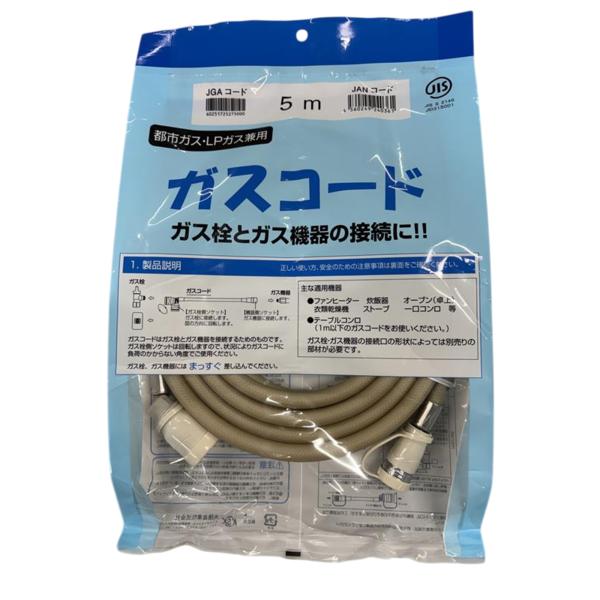 - ガスファンヒーターやガス乾燥機にピッタリのガスコード5m 《特徴》 サイズ:5.0m メーカー:光陽産業 ガス器具側:固定式 ガス栓側:回転式 主な使用用途 ガス衣類乾燥機(乾太くん)、ガスファンヒーター、ガスストーブ、タイマー付き炊飯器用 ※テーブルコンロは1m以下のガスコードをお使いください。 ガスの種類 都市ガス、プロパンガスともに使用可能 リンナイ、パロマ、ノーリツなどの各メーカー、東京ガス 大阪ガス 東邦ガス 静岡ガス 西部ガスなどの都市ガス、プロパンガスに対応 他の長さがご希望の方は下記よりご注文ください。 0.5m 1.0m 1.5m 2.0m 3.0m 4.0m