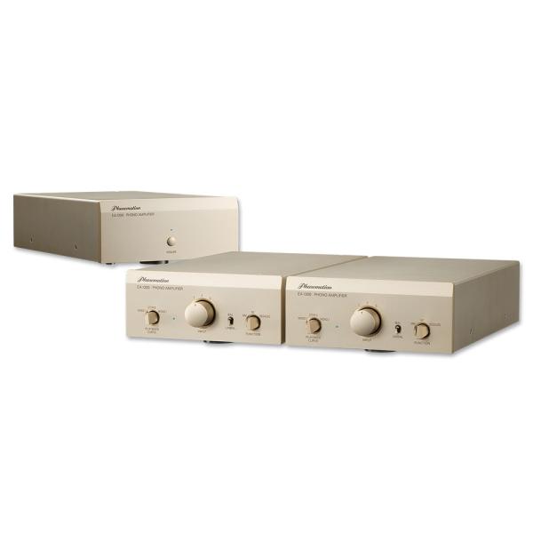 - 2022年12月発売 レコードに刻まれた音楽の実在感 アーティストの情念をも引き出す セパレートタイプ(3筐体) 管球式LCR無帰還型フォノアンプ Phasemation EA-1200 2012年、Phasemationは「アナログもまだ極めつくされていません」を合言葉として、アナログディスク愛好家向けに、世界初3筐体構成フォノアンプEA-1200を発売しました。昨年は、PhasemationフォノアンプEA-2000が発売されました。 そして、本年9年の時を超えてEA-2000の新次元の音色を色濃く受け継いだEA-1000の後継機、PhasemationのニュースタンダードEA-1200が発売されました。 ◆主な特長 ●Lch、Rch独立3筐体構成の管球式LCR無帰還型フォノアンプ 1. T-1000内蔵のトランスをベースに、特別チューニングを施したMC昇圧トランスを内蔵しました。 2. 左右独立で使いやすさと高音質部品にこだわった、新規設計の真空管式LCR型イコライザー部。 3. EA-1000の電源部をベースに、更なるノイズ対策を施し、よりクリーンで強力になった左右共用電源。 左右独立筐体に分割されたEQアンプ部と強力な電源部に支えられた再生音は、高S / Nで高分解能、圧倒的な臨場感と見通しのよいステージ再現で演奏者の実在感を最高度に表現します。 ◆詳細 ●モノブロック2筐体構成の管球式ユニットアンプによる無帰還LCR型イコライザー部 1. T-1000相当のトランスをアンプ内に内蔵し、3系統の入力全てでバランス対応入力のMCとMMの切り替えが可能。またMCのアンバランス接続時のノイズ対策としてBAL / UNBAL切り替えSWが採用されています。 2. 過渡特性に優れ、音質に定評のあるECC-803Sの無帰還SRPP型増幅回路+ECC-802Sによる低インピーダンス出力カソードフォロワーをユニットアンプとして採用しています。真空管ならではのダイナミックレンジの大きな艶やかで躍動感ある音質をお楽しみいただけます。 3. イコライザー回路はLCR型を採用。信号系を低インピーダンス化できるLCR型とすることで、信号系での電力損失及び誘導ノイズを最小に抑え、音質劣化を抑制。大型コイルや高音質フィルムコンデンサ等の高音質部品の採用で、入力された情報をロスなく最終段より出力します。 4. 3種類のイコライザーカーブ切り替えスイッチを搭載し、STEREO用RIAA、モノラル専用のMono1(DECCAレーベル等で使用)、Mono2(コロムビアレーベル)もより高忠実度再生が可能となります。 左右独立筐体に分割されたEQアンプ部と強力な電源部に支えられた再生音は、高S / Nで高分解能、圧倒的な臨場感と見通しのよいステージ再現で演奏者の実在感を最高度に表現します。 ●モノ筐体の直熱整流管5U4G、高容量Rコアトランスを使用した電源部 整流回路には必要以上に十分な容量を持つRコア電源トランスが使用され、原理的にスイッチングノイズの発生しない整流管5U4Gとチョークコイル2個左右独立使用による贅沢な整流回路が採用されています。さらに電源トランス、チョークコイルに磁気シールド対策を施し、よりクリーンで強力な電源をアンプ部に供給しています。 また、アンプ部のヒーター電源には3端子レギュレータによるDC点火を採用し高S / Nを実現しました。 ●質感の確保 EA-2000のエレガントなデザインを踏襲した10mm厚アルミスラントフロントパネル、1.6mm厚の銅メッキ鋼板シャーシベース、2mm厚アルミ材に磁気シールドを配したカバーで構成された強靭な筐体こうぞうを採用し、剛性の確保と磁気歪の低減を実現しています。 フットには外部振動を遮断する重量級金属インシュレーターを採用。 RCA端子は高品質・高音質で定評のあるフルテック社製金メッキ端子を採用し、XLR端子には音質のトータルバランスを追求し、ノイトリック社製金メッキを採用しました。 普遍性の高い風格のある仕上がりは、所有する喜びを裏切りません。 ◆仕様 形式 : 管球式LCR型無帰還フォノアンプ 入力様式 : MM / MC 入力感度 : MM : 2mV MC : 0.1mV 適合カートリッジ出力インピーダンス : MM : 47Ω以下 MC : 1.5 ~ 40Ω 利得 : MM : 40dB MC : 66dB 入力換算雑音 : MM : -120dBV MC : -146dBV 定格出力電圧 : 200mV(1kHz) RIAAカーブ偏差 : ±0.5dB(20 ~ 20kHz) 消費電力 : 43W(100VAC 50~60Hz) / 片ch 外形寸法 : アンプ部 : 幅 210mm × 高さ 93mm × 奥行 365mm × 2 電源部 : 幅 210mm × 高さ 93mm × 奥行 346mm × 1 本体質量 : アンプ部 : 4kg x 電源部 : 5.8kg ※ご注意 EA-1200の各入力は、XLRとRCAのどちらか片方しか使用できません。両方に同時に接続すると誤作動の原因になります。