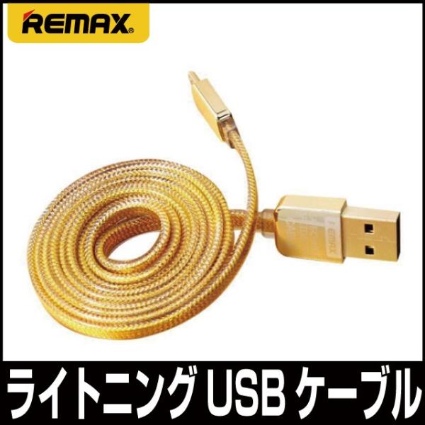 【二本セット 送料無料】iPhone 充電 絡みにくい 平型 ケーブル ライトニング 1m Lightning Apple 急速充電 データ転送 GOLD ゴールド REMAX
