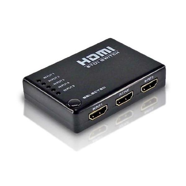 便利なリモコン付きの5ポートHDMI切替器。