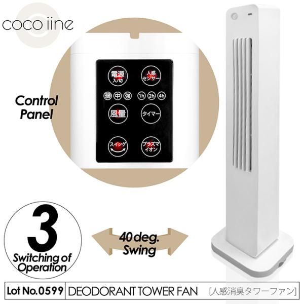 消臭機 人感消臭タワーファン プラズマイオン 活性炭フィルター 人感センサー タイマー機能 3段階風量調整 横向き設置 ルーバー40°可動 HMJ-01