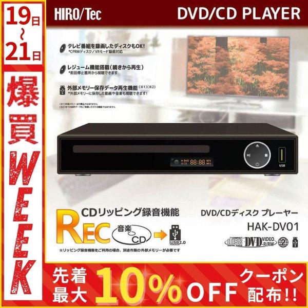 DVDプレーヤー AV出力 CDディスクプレーヤー 外部メモリー 音楽 USBポート リモコン 録画ディスク CDリッピング録音 レジューム機能 HAK-DV01