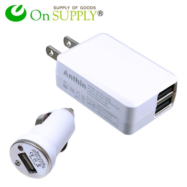 小型カメラ スマホ USB充電器セット コンパクト 高出力5V-2.0A USB×2ポート USB-ACアダプター USBシガーソケット充電器付 ホワイト Fa-922W