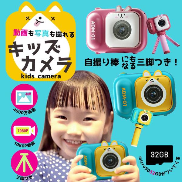 - 動画も写真も撮れるキッズカメラ! 自撮り棒にもなる三脚付き 4800万画素の前後ダブルカメラで自撮りや 友達との撮影も楽しめる。 8倍ズームで遠くの対象もしっかり写せる! 3つのゲームで遊べてMP3形式の音楽を再生出来ます。 商品仕様 機能 写真撮影/写真フレーム/ビデオ録画 ゲーム(3種類)/MP3音楽再生 デイスプレイ 2.4インチ 写真解像度 4800万画素 (20・18・16・1 2・8・5・3・2 M P X) 動画解像度 720P/1280x720 VGA/640X180 セルフタイマー オフ 2S 5S 10S 充電時間 約1〜2時間 連続使用時間 約2〜3時間 電圧 DC-5V/1A 素材 ABS(本体) サイズ カメラ 約9.8X7.5cm 三脚 約10XΦ9.6cm 重量 約93.5g+48g(カメラ+三脚) 付属品 本体 三脚 ストラップ 32GBメモリーカード USB充電ケーブル(Type-C) USBメモリカードリーダー 説明書 保証書