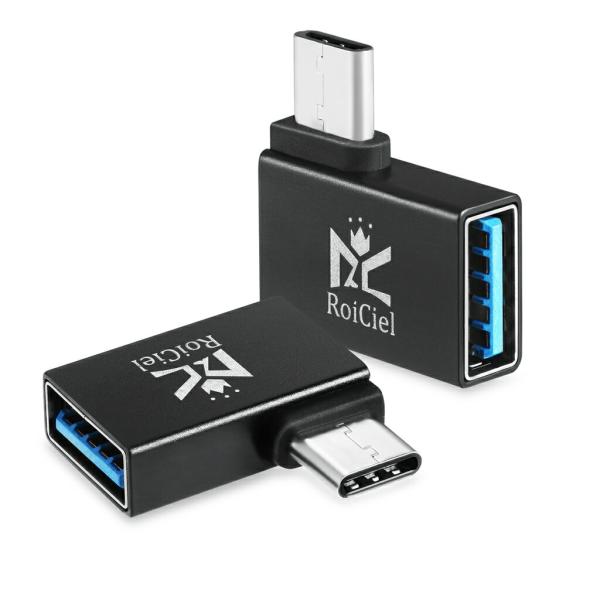 - 【2個セット】RoiCiel L字型アルミニウム合金製USB-C to USB-A(OTG機能)変換アダプタ/変換コネクタ 裏表関係なく挿せる 高速転送可能 (ディアルズシーリズ) USB Type C 変換 アダプタ USB 3.0 最大5Gbps 高速データ転送 OTG対応 タイプC 変換コネクタ タイプcからusb