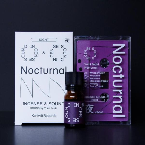 [夜]をイメージした天然由来成分100%使用のオリジナルエッセンシャルオイルと、その香りから想起されたイメージを基に90年代から作曲家、作詞家として様々なメディアでプロフェッショナルな活躍をしてきた東京を拠点とする電子音楽家”Yumi Iwaki”が制作した楽曲収録のカセットテープを合わせたセットです。パッケージのデザインはKankyo Recordsのロゴデザインも手掛けるYudai Osawaが担当。マスタリングはChihei Hatakeyama氏が担当。揮発し徐々に変化する香りと音楽の融合による有機的な空間体験をお楽しみください。