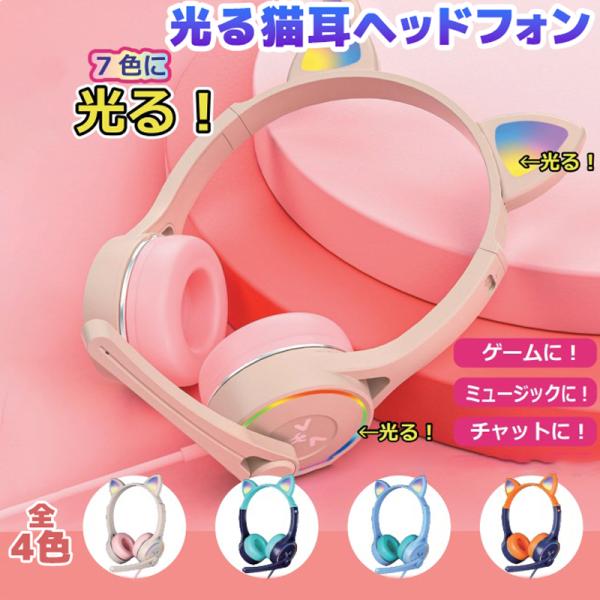 ヘッドフォン ヘッドホン LED 猫耳 ハイハイ 可愛い かわいい おしゃれ 光る 有線 マイク付き ゲーミング 実況 ヘッドセット ハンズフリー 実況
