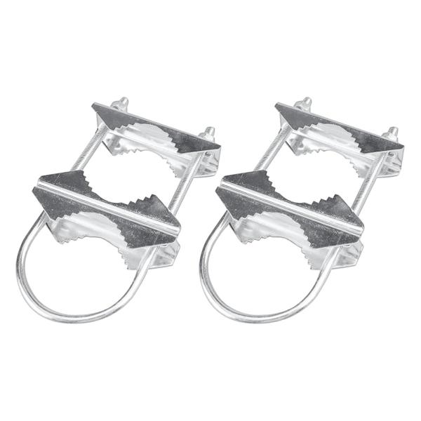 「商品情報」「主な仕様」アンテナマスト 固定金具 クランプは屋外でもご利用できる、頼りになるアンテナ取付金具です。ポール、柱などの太い径のマストに、アンテナなどを細い径を取り付けるのに役立つダブルのU字型金具です。