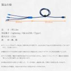 iPhone Android 両用 急速充電ケーブル lightning & Type-C 1m micro USBケーブル 3in1 USBケーブル 高耐久 メール便 2 送料無 XCA110L
