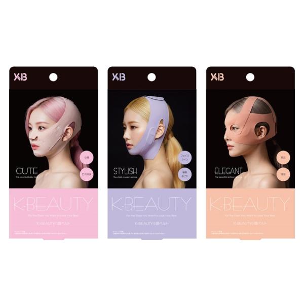 K-BEAUTYから顔用リフト(※)ベルトが登場。顔全体をギュッと包み込むタイプの「キュート」、フェイスラインを包み込むタイプの「スタイリッシュ」、ほほ・目元を包み込むタイプの「エレガント」の3種類からお選び頂けます。