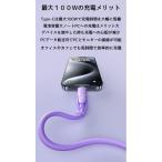 - 「最強配送」は「(旧)あす楽」とは違います。 追跡可能メール便の場合は翌日配達されるエリアが用意されています。詳しくは商品画像でご確認ください。 シリコン充電ケーブルは、従来の充電ケーブルとは異なる素材を使用し、柔軟性や耐久性に優れた製品。 ◆柔軟性 シリコン素材は非常に柔らかく、ケーブルが曲がりやすく、取り回しが容易。 折り曲げやねじれに強く、断線しにくいという特徴。 ◆耐久性 シリコン素材は、一般的なケーブル被覆材よりも耐久性が高く、長期間の使用に耐えられる。 多くの製品が、折り曲げ試験などの耐久性テストをクリアしている。 ◆絡まりにくさ シリコン素材の表面は滑らかで、ケーブル同士が絡まりにくい。 バッグやポケットに入れても、取り出す際にストレスを感じにくい。 ◆触り心地 シリコン素材は、独特のサラサラとした手触りがあり、心地よい使用感を提供する。 ◆使いやすさ 柔軟性があり、取り回しが容易なため、日常的な使用に便利。 絡まりにくいため、持ち運びや収納が容易。 ◆耐久性 断線しにくく、長期間使用できるため、ケーブルの買い替え頻度を減らせる。 ◆快適性 サラサラとした手触りが心地よく、快適な使用感が得られる。こんなケーブル探してました ●4in1充電ケーブル シリコン製 高速充電 絡まない ●アップルユーザー限定 4in1 急速充電ケーブル データ転送可能 ●4つのインタフェースモード 1.USB-A ⇒ タイプC ( TYPE-C ) 2.USB-A ⇒ ライトニング ( LIGHTNING ) 3.タイプC ⇒ タイプC ( TYPE-C 4.タイプC ⇒ ライトニング ( LIGHTNING ) あらゆるニーズに対応可能 ●シリコン製のメリット 柔らかく曲がりやすい 折り曲げ引っ張りに強く、断線しにくい なめらかで抵抗が少ないく絡まりにくい 温度変化に強く高低温下でも劣化しにくい サラサラで柔らかくい快適な使用感 ●最大100Wの充電メリット Type-Cは最大100Wで充電時間を大幅に短縮 電池容量大ノートPCへの充電はメリット大 デバイスを増やした時も充電への心配が減少 PCデータ転送可でPCとモニターの接続が可能 オフィスやカフェでも短時間で効率的に充電 ●データ転送最大480Mbpsメリット 写真や動画をPC転送時ストレスなく利用できる 音楽ファイルをスマホや音楽プレーヤー転送も早い ドキュメントやPDFファイルの転送も迅速に利用可 ●国際純銅とは? ケーブルの導体に純度の高い銅が使用されていること 電気抵抗が低く電気を効率的に流すことができる 信号の損失や電圧降下が少なく安定電気信号伝送が可能 純度の高い銅使用でケーブルの性能や耐久性が向上する ●改良型液体シリコンとは? 柔軟性と耐久性触感の良さが要求の充電ケーブルに最適 従来の製品に様々な技術や添加剤を用い改良シリコン素材 摩耗や引っ張り、折り曲げに対する耐久性と寿命が向上 柔軟性を高めることで扱いやすさやフィット感向上 広い温度範囲で使用できるよう耐熱性や耐寒性向上 より滑らかで埃や汚れが付着しにくい触感を実現 ●先端搭載のスマートチップとは? ケーブルに内蔵された集積回路(ICチップ)のこと 接続されたデバイスに過剰な電流や電圧が流れるのを防ぐ 接続状態を検知し最適な電力供給を自動的に調整する データ転送速度を最適化し転送時のエラーや遅延を低減 温度を監視し異常な高温を検知した場合に充電を停止する 過電流・過電圧保護、温度管理機能により、安心して充電 安定したデータ転送でデータ通信の信頼性が向上する ●カラーバリエーション パステルカラーを揃えましたお好きな色をお選びください ピンクは優しさや愛情、思いやりなどの感情を表現する パープルはどこか神秘的で魅惑的な雰囲気を持ち合わせる グリーンは人の心を穏やかにしリラックス効果をもたらす ブルーは人の心を落ち着かせ冷静な判断力や知性を高める
