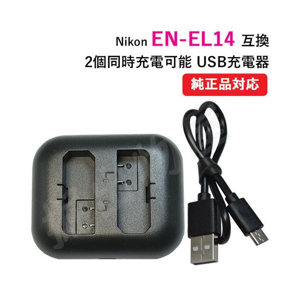 充電器(USB 2個同時充電 タイプ) ニコン(NIKON) EN-EL14 / EN-EL14A 対応 コード 00173