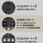 - コンパクトで多機能なポータブル電源 アウトドアや災害時に非常用電源として活躍する多機能ポータブル電源です。 42000mAhの容量ながら、重さは約1.7kgと持ち運びに便利なサイズ。 USB出力x3、Type-C出力があり、モバイル端末の高速充電も可能。 AC出力ではノートパソコンやLEDテレビの動作も確認済。 高輝度のLED懐中電灯、照明もあり1つで何役もこなせるすぐれものです。 電池容量:155Wh 42000mAh/3.7V 満充電時間:DC15V/2A 8〜9時間 充電ポート:DC15V/2A(専用ACアダプター、DCアダプター付き) ソーラー充電:13Vから25V 最大2.0A 本体サイズ:約W207×D96×H180mm 重 量:約1.7kg USB出力1:2×USB 5V-2.1A max 合計5V/最大3.5A USB出力2:1xUSB 5-9V/2A (QuickCharge 3.0対応) USB出力3:1xType-C 5-9V/2A (QuickCharge 3.0対応) DC出力:3×5.5mm 9〜12.6V/10A(合計最大15A) AC出力:修正正弦波 AC出力100V10% 定格電力 100W (最大150W) 【その他の装備】 高輝度LED懐中電灯×1 高輝度LED照明×1 電源残量表示:LEDインジケーターにより表示 動作環境:温度-10℃から40℃ 製 造 :中国 製品保証:商品到着後1年間 届出事業者名:株式会社JCコーポレーション PSマークの種類:PSE ポータブル電源 ソーラーパネル 蓄電池 家庭用蓄電池 発電機 ソーラパネル 太陽光 ソーラーチャージャー ソーラー ソーラー充電器 太陽光パネル 太陽光発電 省エネ 防災関連グッズ 災害 非常時 コンパクト 持ち運び アウトドア キャンプ 冬キャンプ 車中泊 ポタ電 節電対策 バッテリー 停電対策 送料無料 おすすめ 父の日ギフト 父の日 プレゼント 実用的 母の日 誕生日 クリスマス バレンタイン 誕生日プレゼント 結婚祝い 内祝い 出産祝い 結婚 出産 引越し 入居 引越し祝い 新築祝い 春 新生活 秋 冬 プレゼント交換 年末年始 大切な人への感謝の気持ち お歳暮プレゼント ご褒美 日常ルーティン ポイント消化 喜ばれる 素敵な贈り物 楽天スーパーセール マラソン 買いまわり 買い回り お買い物マラソン LED ライト付き 防災 防災対策 災害 ポータブル 持ち運び