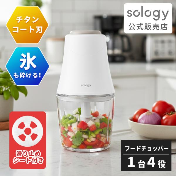 フードプロセッサー 電動 300ml 氷も砕ける チタンコート ミキサー 小型 みじん切り チョッパー 離乳食 氷 ホワイト 滑り止めシート付き FPS5601WH sology