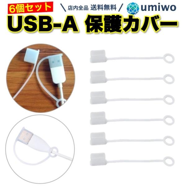 USB 保護カバー オス端子 リード付き 6個セット USB-A シリコン 半透明 カバー 脱落防止 紛失防止 保護キャップ USB-A端子 接続部分 劣化 破損 キャップ